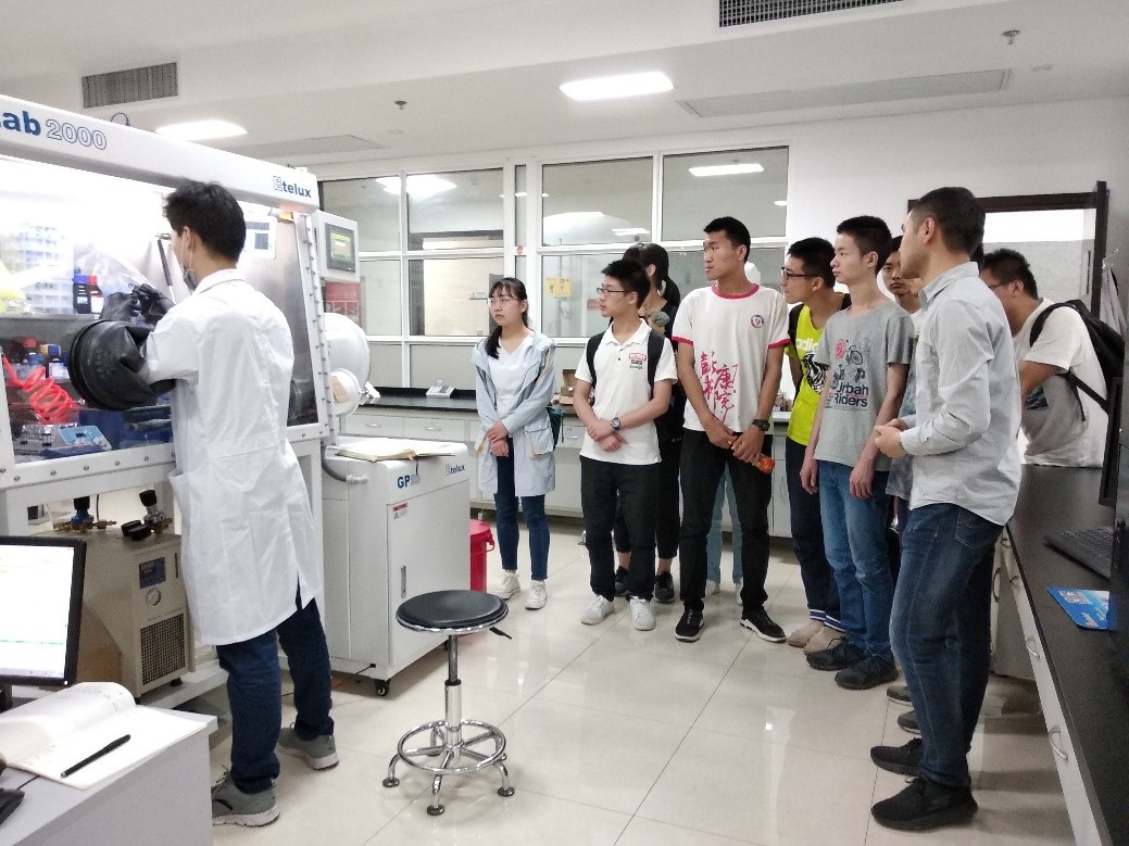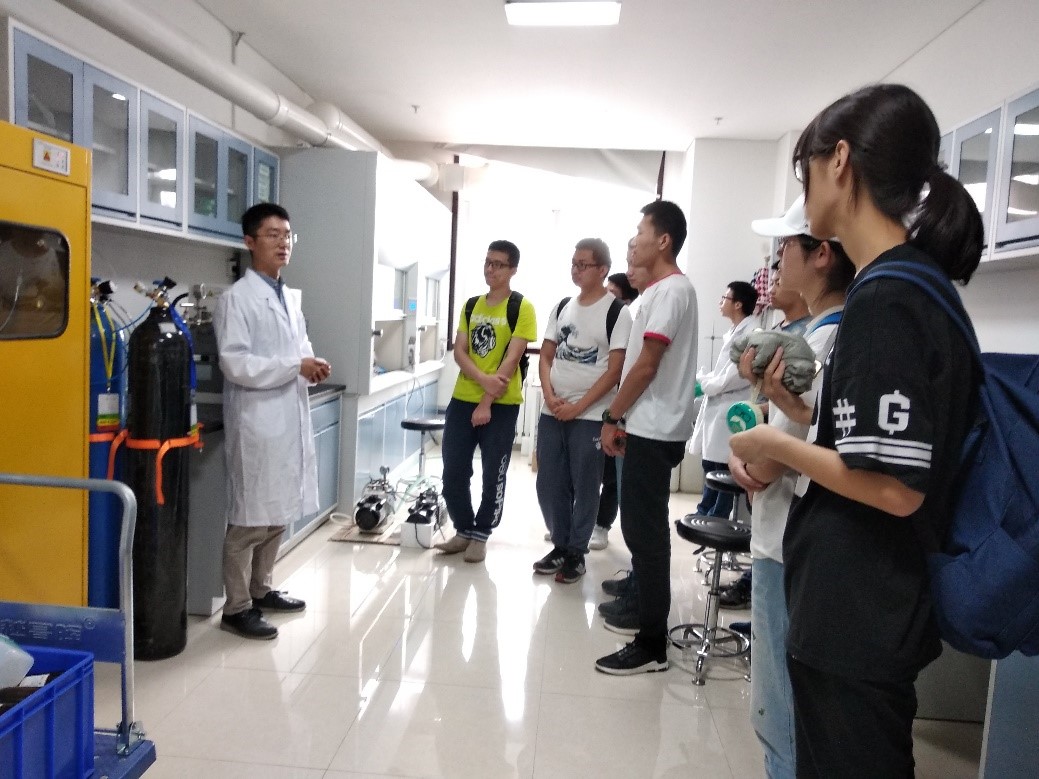 走进功能材料中心,胡少杰老师带领着同学们一同回顾实验室发展历程,讲述学科发展现状,从学科专业的角度为同学们讲解了飞秒、皮秒的区别以及课题组正在做的自旋电子材料与量子器件,潘毅老师则为同学们讲解了如何利用STM原子操纵技术在半导体材料表面构造功能性人工纳米结构,增加了同学们对原子尺度的认识。在表面实验室,孙兰为同学们展示了各种实验设备的管理使用,材料物理化学组老师们带领大家从实验原理、实验过程、现场实验操作及实验室安全等方面为同学们讲解实验室的科研生活。
