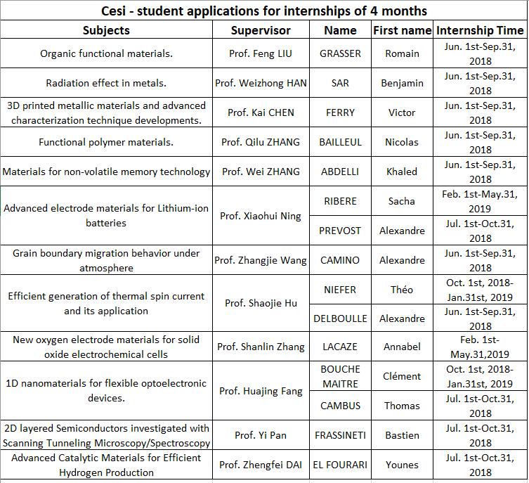 2018年CESI进修生详细信息如下: