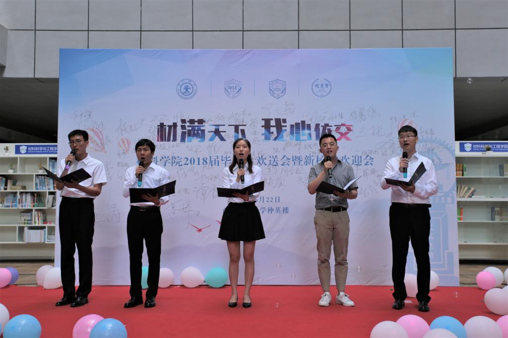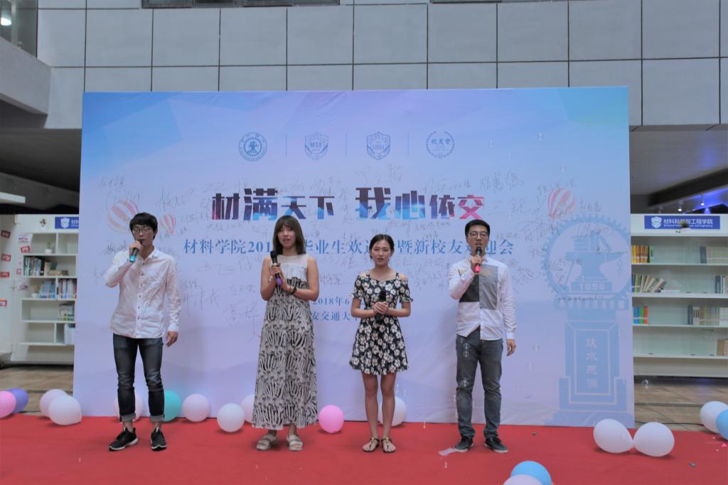 6月22日,新葡的京集团8814在新材料大楼二楼大厅举办以“材满天下,我心依交”为主题的2018届毕业生欢送会暨新校友欢迎会。新葡的京集团8814书记潘希德、副院长王红洁、马飞,副书记魏炜,院长助理朱晓东,表面室主任马大衍,崇实书院院务主任张丹,材料学科校友会执行会长李健、秘书长赵希虎、副会长魏长青、柯宏斌,1981级金相专业校友李志红及100余名本、硕毕业生参加晚会。晚会由硕士毕业生白清林、徐婷婷、井津域主持。