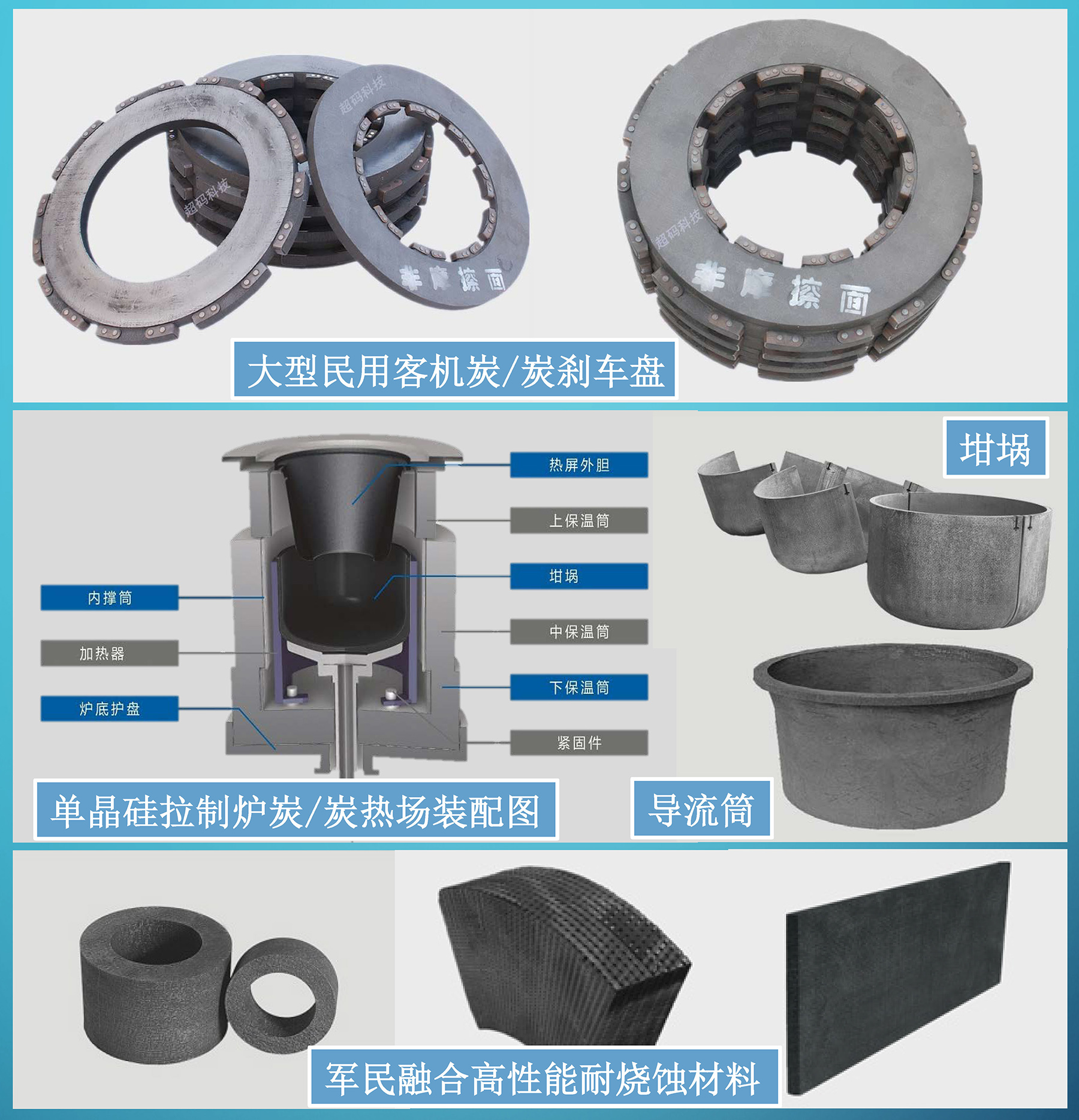 西安超码目前的三大主营业务是光伏产业晶体硅炉用炭/炭热场材料,大型民用飞机炭/炭刹车盘,以及民融合高性能炭基复合材料。