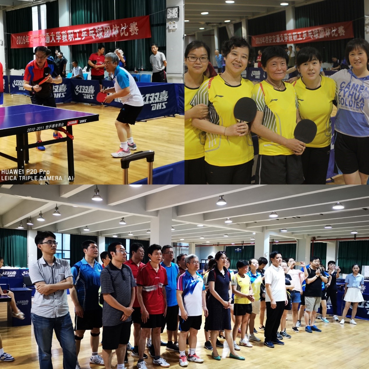 身心健康正当时、全面提升教职工的身体素质。6月29日至6月30日,2018年西安交大教职工乒乓球团体赛在我校文体中心举行。新葡的京集团8814男团选手:徐可为、宋小龙、仝明信、周根树、赵军荣;女团选手:刘黎、黄平、俞怀贞、付琴琴、高圆。