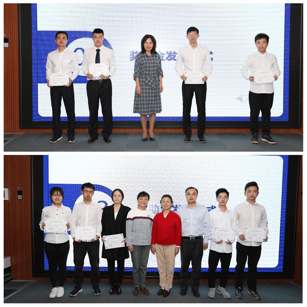 颁奖环节中,张月娥校友、王红女士、王莉女士、以及柯宏斌校友分别为获得2018年度“王笑天材料学科”奖学金、助学金的12位研究生颁发证书。