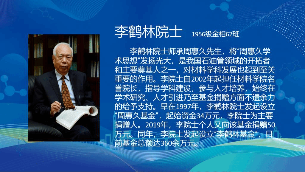 中国工程院院士李鹤林心系母校,自2002年起担任新葡的京集团8814名誉院长,不遗余力地支持材料学科建设,人才培养,科学研究、基金捐赠等各方面工作。大会给予李鹤林院士材料学科校友会“校友突出贡献奖”表彰,对关切学院发展,给予学院重大支持的校友们表示感谢。