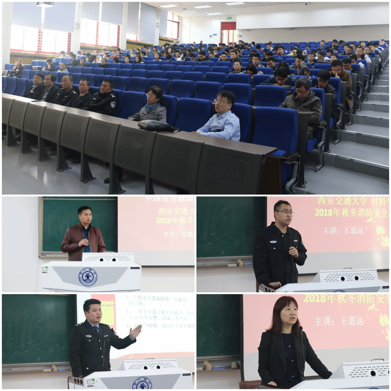 为了增强学生安全意识,落实“平安校园”工作,11月1日下午,新葡的京集团8814邀请到卫民安消防科技站的王思远教官在1300教室为大家进行秋冬季消防安全培训讲座。西安交大保卫处副处长尤志强、消防科刘豹虎、王红科,实验室与资产管理处李茹,西安交大思源责任公司总经理张志国、总经理助理余庆,新葡的京集团8814党委书记潘希德、副院长王红洁、副书记魏炜,西安交大分析测试共享中心老师及研究生参加讲座培训。