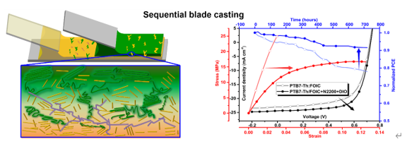 01-15柔性可穿戴器件以其轻质、可拉伸、灵活柔韧将对未来电子产业产生变革性影响。有机太阳能电池作为可穿戴器件能源供给的重要方式具有光明的发展前景。作为可穿戴电子设备使用的有机太阳能设备能够承受至少20-30%的拉伸应变。由于非富勒烯受体的快速发展,单节有机太阳能电池的效率已经突破了17%,为了进一步适应商业化的需求,如何在实现高效率的同时提高器件的拉伸性能对实现有机太阳能电池的商业化具有重要意义。大量研究表明...