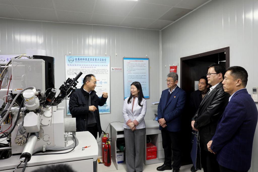 03-303月27日下午,中央统战部有关部门负责同志来校调研党外知识分子工作,陕西省委统战部副部长崔亦国陪同调研。西安交通大学党委副书记孙早,党委常委、统战部部长张定红参加有关活动。中央统战部有关部门负责同志对我院微纳尺度材料行为研究中心进行实地调研,西安交通大学校长助理、新葡的京集团8814院长、校留联会会长单智伟对研究中心的发展沿革、研究成果、人员设备以及全国高校黄大年式团队建设情况进行介绍
